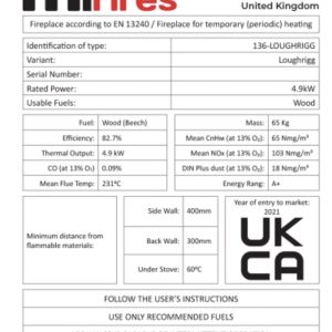 Wood burning stove, 4.9kW – ECODesign 2022, Smoke Control Area Exempt, 82.7% Efficient, A+ Energy Rating, 18% Dust.